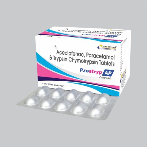 Composition: Aceclofenac 100mg + Paracetamol 325mg + Trypsin Chymotrypsin 50,000 A.U.