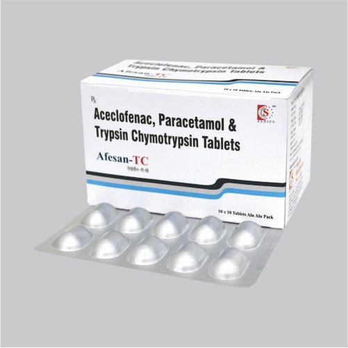 Aceclofenac, Paracetamol & Trypsin Chymotrypsin Tablets come under the foil packaging in a box containing 10 tablets. The tablets are packed with all the necessary precautions and passed all the quality checks before entering the market.