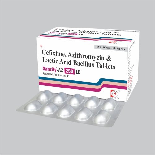 Cefixime, Azithromycin & Lactic Acid Bacillus Composition is made with the combination of three salts namely, Cefixime is an antibiotic used in the treatment of severe levels of bacterial infections by providing the outer protective layer to the cells. Azithromycin is a salt that promotes the production of natural antibodies thereby stopping the growth of bacteria. Lactic Acid Bacillus is a form of beneficial bacteria that helps in curing the gut health affected by the presence of infection. The dose is produced by keeping in mind the compositional measurement. Cefixime, Azithromycin & Lactic Acid Bacillus.