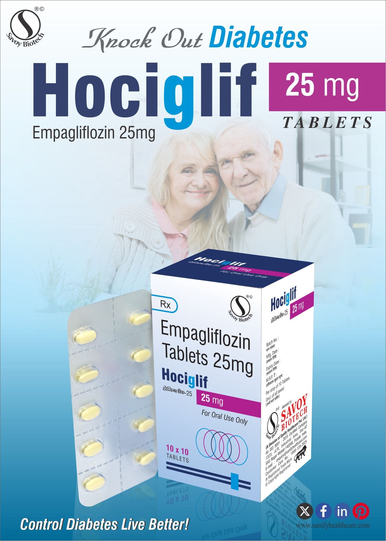 HOCIGLIF-25 is the brand name of EMPAGLIFFLOZIN 25 mg Tablet manufactured by Sanify healthcare. EMPAGLIFFLOZIN 25MG is a diabetes medicine used in the treatment of type 2 diabetes. It works by removing the glucose from the blood and excreting it through urine. EMPAGLIFFLOZIN 25MG Tablet has other uses also, such as lowering the risk of heart attack, stroke, or hospitalization of people with type 2 diabetes. It also reduces the risk of heart or blood vessel disease. It also reduces the risk of worsening kidney disease.