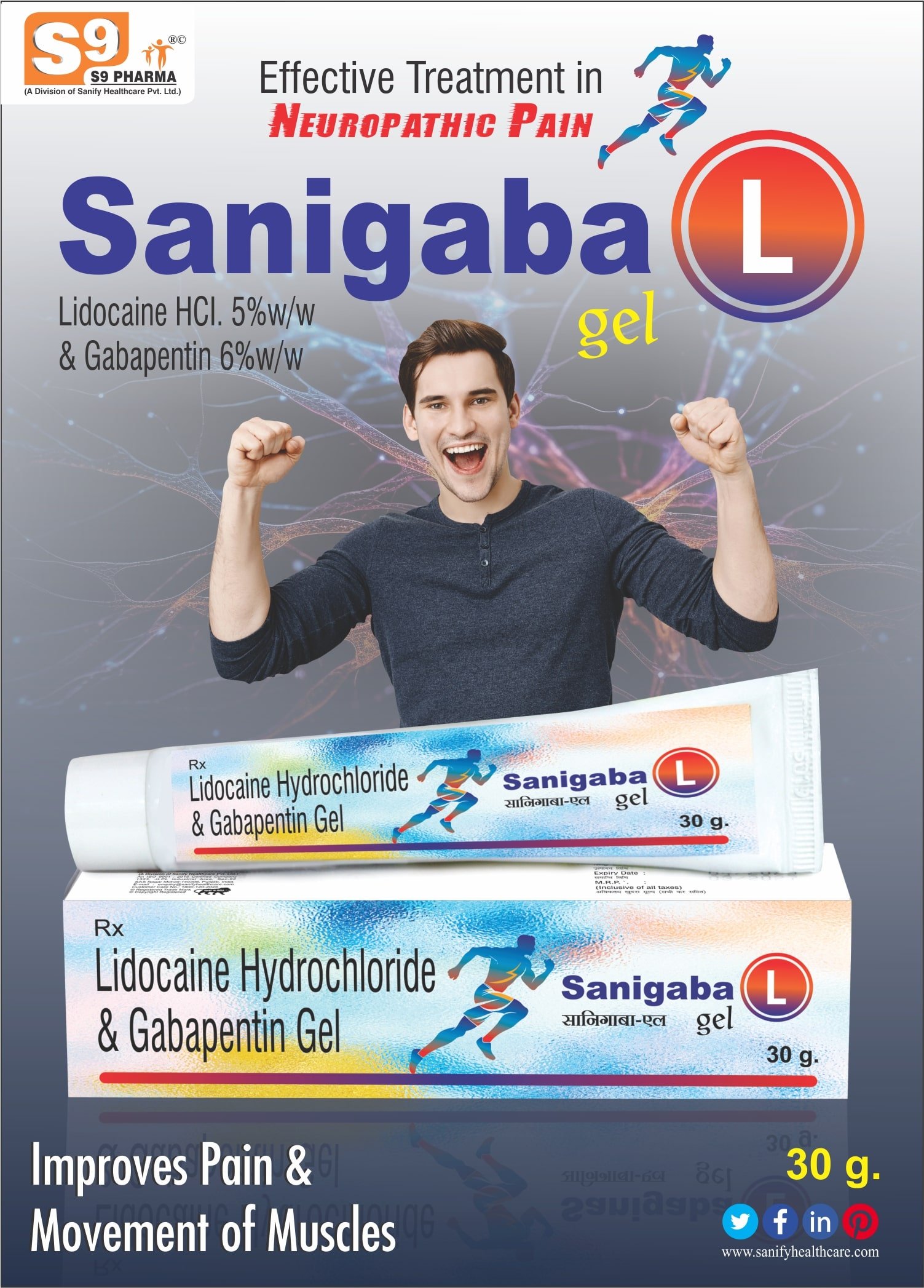 Sanigabal is the brand name for Gabapentin 6% w/w + Lidocaine 5% w/w Gel manufactured by Sanify Healthcare. This medication consists of Gabapentin and lidocaine, which are used to neutralize pain.