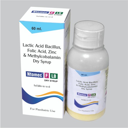 Lactic Acid Bacillus 40 million sporses+Riboflavine 1.5 mg+Pyridoxine Hydrochloride 1 mg+ Niacinamide 50 mg+folic Acid 100 mcg+Methylcobalamin 1 mcg+Zinc sulphate Monohydrate 13.7 mg eq. to elemental zinc 5 mg is a composition used in the product called Ntomec-F-LB Dry Syrup. This is a beneficial syrup that helps in the provision of multivitamins to the body. There are various types of nutrition that are required by the body and for instance, the sickness of the person leads to a deficiency. If the person consumes the aid on a beneficial level, then it truly supports the body’s needs and helps in restoring the lost vitamin deficiency.